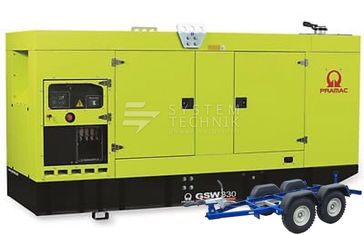 - Дизельный генератор Pramac GSW 330 DO 400V В кожухе на прицепе